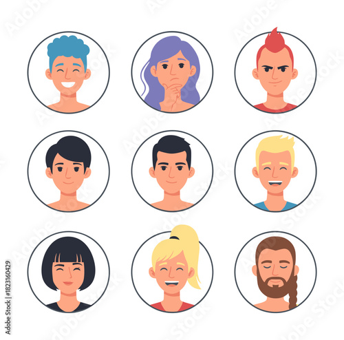 © ProVector, Fototapeta premium Diverse cartoon avatar heads expressing various emotions