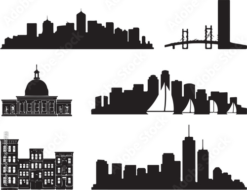 © BrandRipple, Naklejka premium Diverse city skylines and architecture silhouettes for design