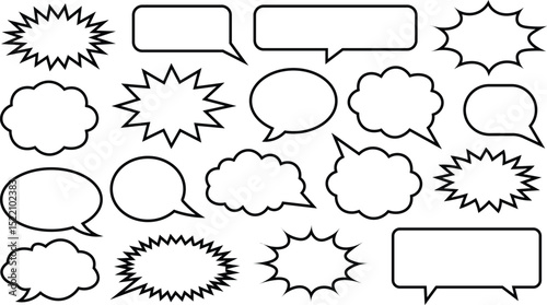© Solaiman77, Obraz premium Diverse collection of black and white speech bubbles for comic book illustrations and designs