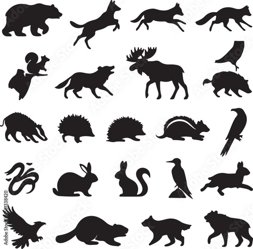 © grapxitbd, Fototapeta premium Diverse collection of wild animal silhouettes bear wolf
