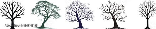 Obraz premium Diverse Collection of Winter and Evergreen Tree Silhouettes - Nature Graphic...