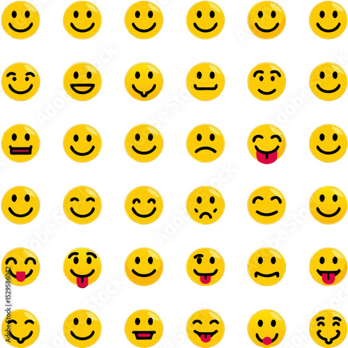 © MumarProject, Obraz premium Diverse Collection of Yellow Emoticon Faces Showing Various Expressions