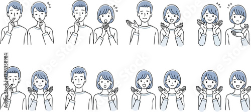 © Gunali Rezqi Mauludi, Fototapeta premium Diverse Couple Illustrations Expressing Various Emotions and Poses, Simple Style.