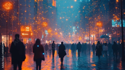 © julija, Obraz premium diverse crowd interconnected through a web of glowing connections symbolizing the integration of big data smart city concepts and the future of urban living in an engaging visual narrative