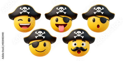 Fototapeta premium Diverse 3D pirate emoticons showcasing a range of funny expressions isolated...