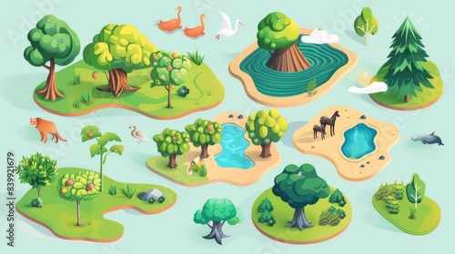 Naklejka premium Diverse ecosystems, with illustrations of forests, oceans, deserts, and...