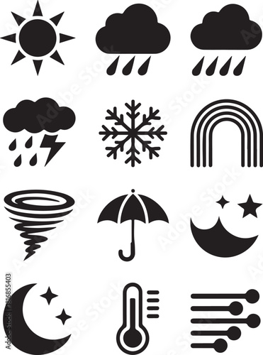 © Graphora, Obraz premium Diverse forecast weather elements symbols forecast