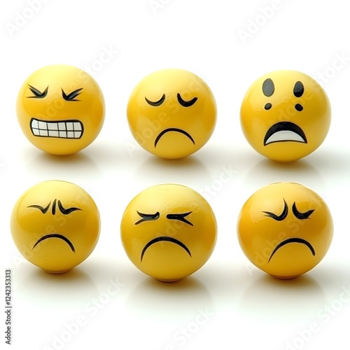 Fototapeta premium Diverse Genuine Human Facial Expressions Showcasing Various Emotions on Yellow Spherical Shapes