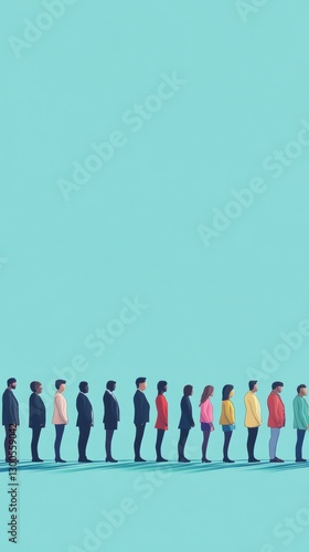 © Suradet Rakha, Naklejka premium Diverse Group of People Standing in Line with Colorful Background