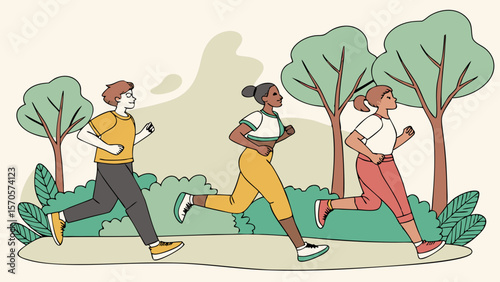 Obraz premium Diverse group of three friends enjoying a healthy outdoor run together...
