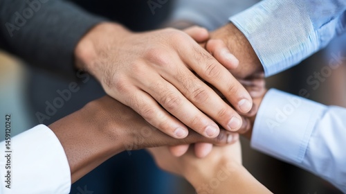 Obraz premium Diverse hands stacked together, symbolizing unity, teamwork, and...
