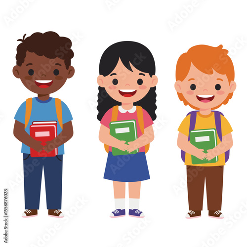 Fototapeta premium Diverse Happy Children with Backpacks and Books Ready for School