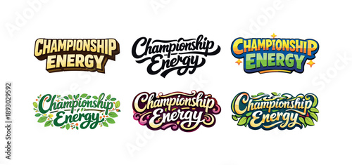 Fototapeta premium Diverse Lettering Styles. Championship energy. Set lettering. harmonious lettering variations of the same emblematic concept, each with different artistic