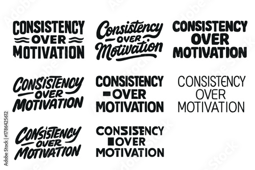 © Марія Томилович, Fototapeta premium Diverse Lettering Styles. Consistency Over Motivation. Set lettering. harmonious lettering variations of the same emblematic concept, each with different