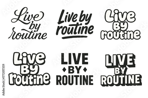 Fototapeta premium Diverse Lettering Styles. Live by routine. Set lettering. harmonious lettering variations of the same emblematic concept, each with different