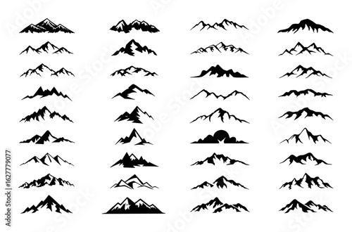 © ThephotoLab, Naklejka premium Diverse mountain silhouettes collection for graphic design peak range