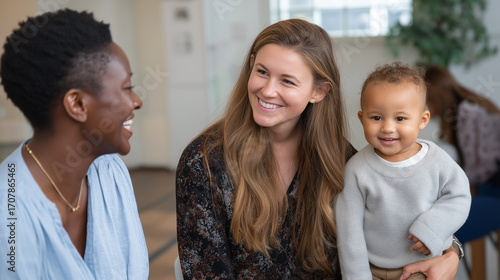 Obraz premium Diverse parenting workshop with interracial families and plus-size caregivers...