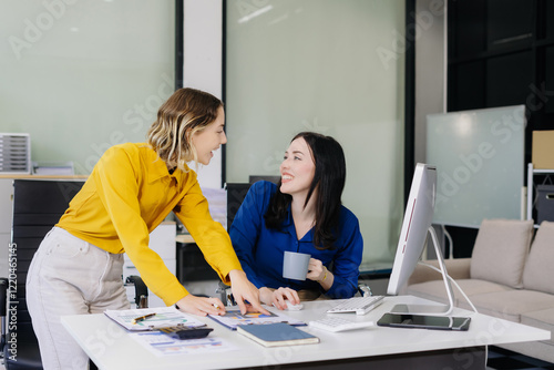 © NINENII, Fototapeta premium Diverse professionals collaborate on project analysis with financial graphs.