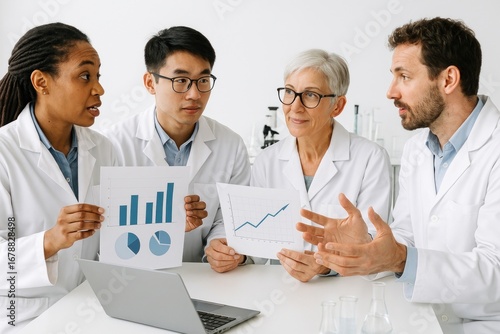 Fototapeta premium Diverse scientists discussing data.