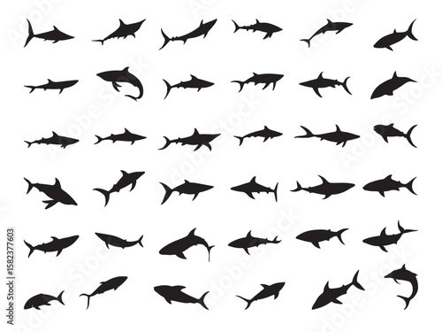Fototapeta premium Diverse Shark Silhouettes for Design and Illustration