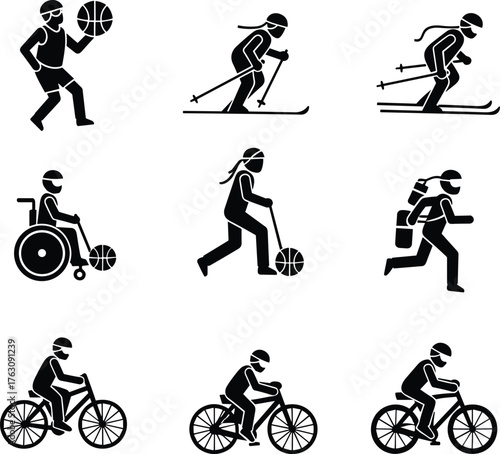 Obraz premium Diverse sports and athletic activities icon set featuring athletes in action vector