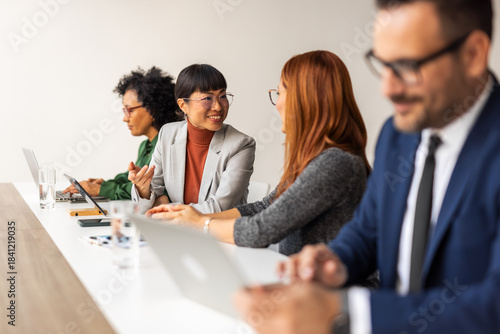 Fototapeta premium Diverse Team Collaborating in a Professional Office Environment