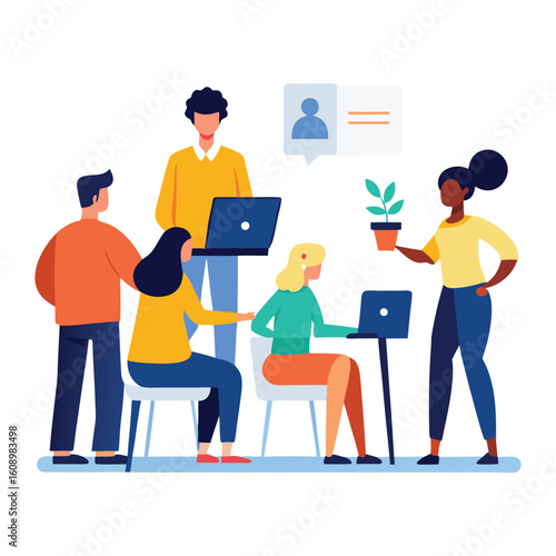 © Silhouette stock, Obraz premium Diverse team collaborating in modern office isolated on white background