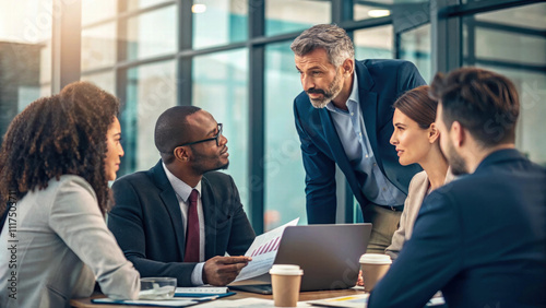 © pimnada, Fototapeta premium diverse team collaborating in modern office setting