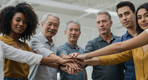 Obraz premium Diverse Team Joining Hands in Unity and Collaboration for a Common Goal