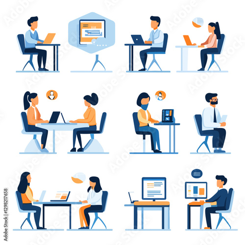 © TatChong, Obraz premium Diverse Team Working on Laptops and Computers at Desks Illustration