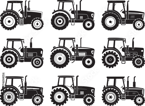 Fototapeta premium Diverse tractor silhouettes for agricultural projects