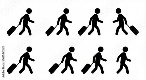 © Petrus Siahaan, Naklejka premium Diverse Travelers Embark on Journeys A Collection of Silhouetted Figures with Luggage Depicting Movement, Exploration, and the Essence of Travel, Whisk_c8c0014d62_bloom_subtle_6x