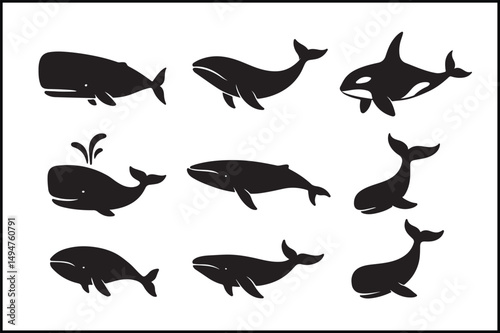 Fototapeta premium Diverse Whale Pose Silhouettes