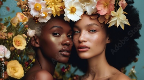 © Maureen, Obraz premium Diverse women adorned with flowers.