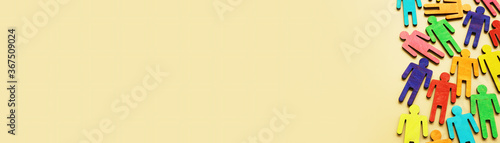Fototapeta premium Diversity concept background. Multi-colored wooden figurines with empty space.