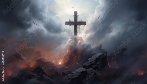Obraz premium Divine Cross in the Clouds - A Symbol of Hope and Salvation, Generative AI