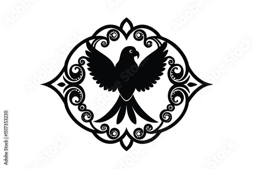 © swpna, Fototapeta premium Divine parrot symbol in sacred paisley frame vector art illustration