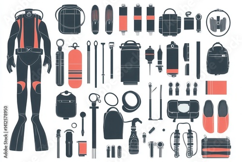 © AHNH3, Obraz premium Diving Gear and Equipment Collection for Water Sports Activities