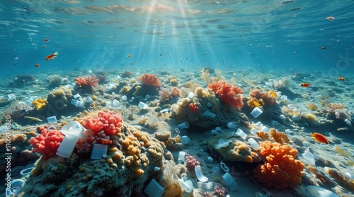 © edisetiawan.id, Naklejka premium Diving in a Sea of Trash: Exploring Ocean Pollution