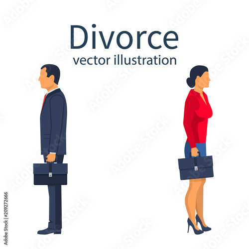 Obraz premium Divorce concept. Breakup concept. A man and a woman go in different directions. Crisis relationship divorce. Unhappy love, conflict. Vector illustration flat design.