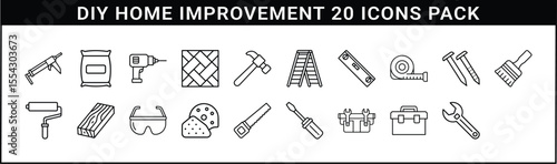 Fototapeta premium DIY Home Improvement Tool Icon Pack - 20 outline icons featuring essential...