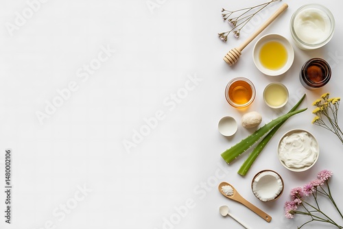 Fototapeta premium DIY Homemade Skincare Remedies on White Background with copy space