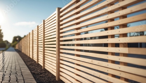 Fototapeta premium DIY prefab timber horizontal fence panels for garden boundary and outdoor...