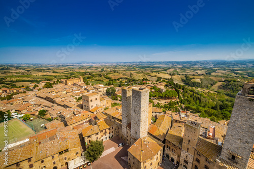 Fototapeta premium dizzy top view Tuscany San Gimignano
