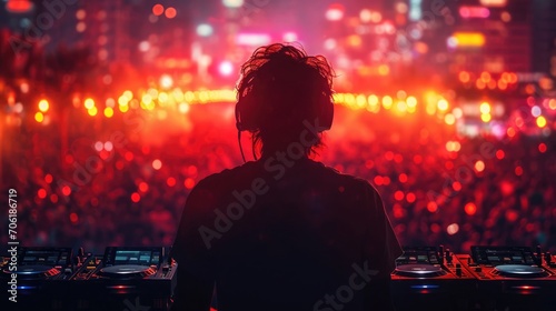 © Aliaksandra, Fototapeta premium Dj mixes the track in the nightclub at a live concert