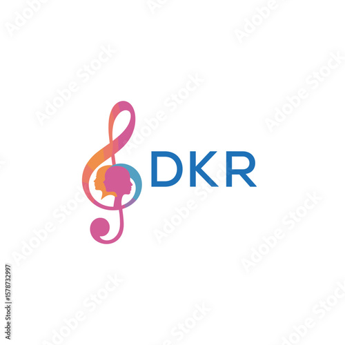 © MDENAMUL, Fototapeta premium DKR “Creative music logo with human silhouettes and treble clef in gradient colors, DKR Later Logo, modern artistic design isolated on white background”