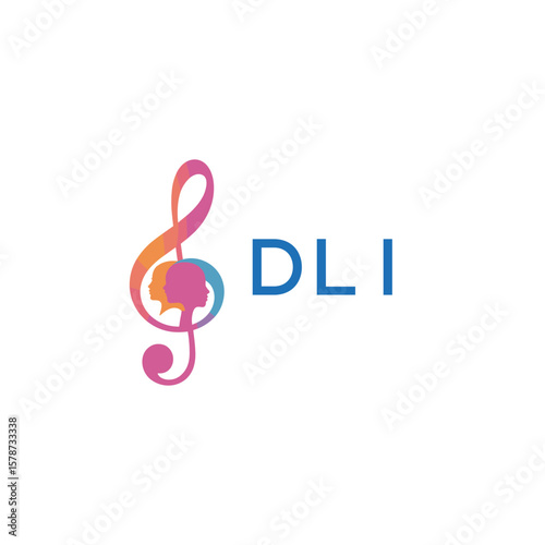 Obraz premium DLI “Creative music logo with human silhouettes and treble clef in gradient colors, DLI Later Logo, modern artistic design isolated on white background”