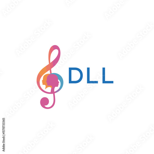 Fototapeta premium DLL “Creative music logo with human silhouettes and treble clef in gradient colors, DLL Later Logo, modern artistic design isolated on white background”