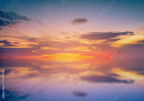 © nuttawutnuy, Obraz premium Długa ekspozycja kolorowe niebo słońca i refleksji nad morzem w Phuket, Tajlandia.