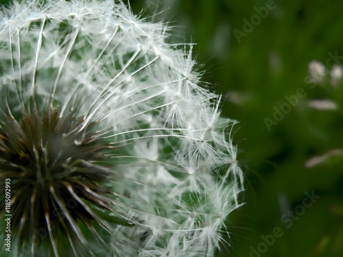 Fototapeta premium Dmuchawiec z bliska na tle zieleni